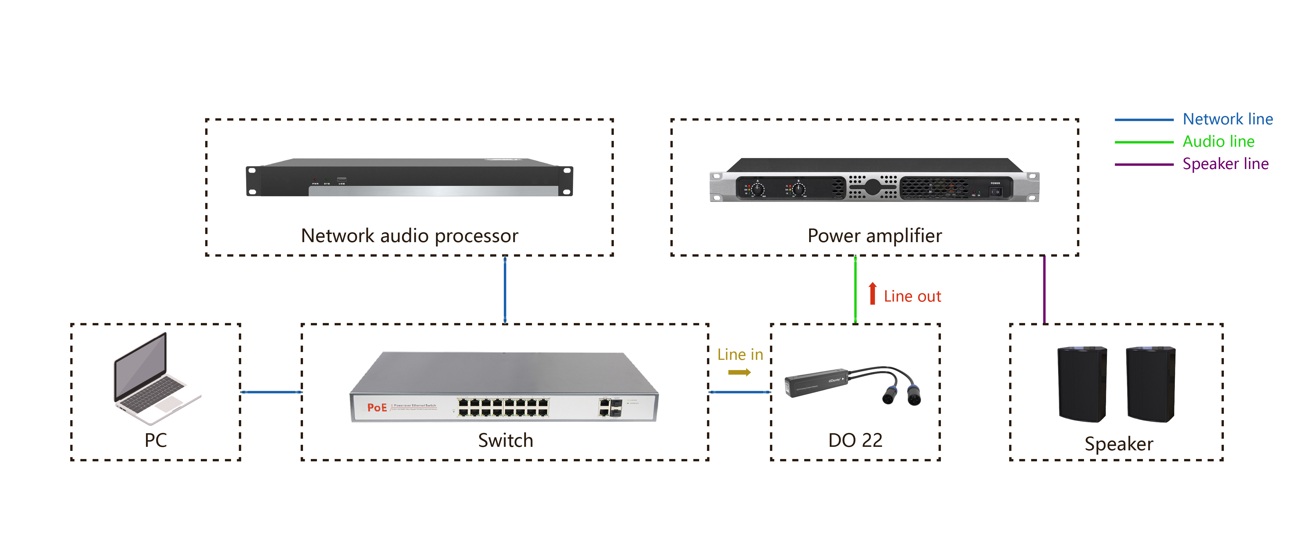 ★ 1. Dante tarmog'ining audio signallarining ikkita kirish variantlarini qo'llab-quvvatlang va ikkita analog audio signal chiqishi.